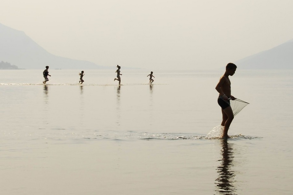 (Adriatic Sea in Montenegro). This family ran merrily through the shallow water. The figures are constantly changing position and I anticipated, and awaited, their proper alignment. The good and proper arrangement of the figures gives the picture a perfect harmony in the free space. It was not difficult to give it a name - "Life is beautiful".