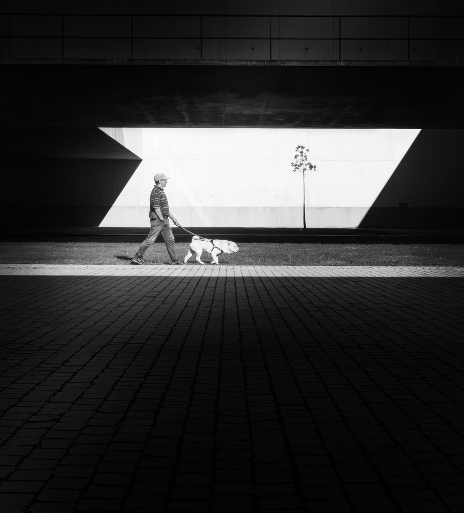 So, in my photography approach and most of the times, basically I try to connect shapes, patterns, light and tones, sometimes including people in the frame and sometimes not, but when I join people to the composition I always try that they work as another linking element in a geometric frame, thinking not about the person itself but the vertical line someone represents in a geometric composition. This linking element can be a static element or a dynamic element but always working to link different parts of the frame.