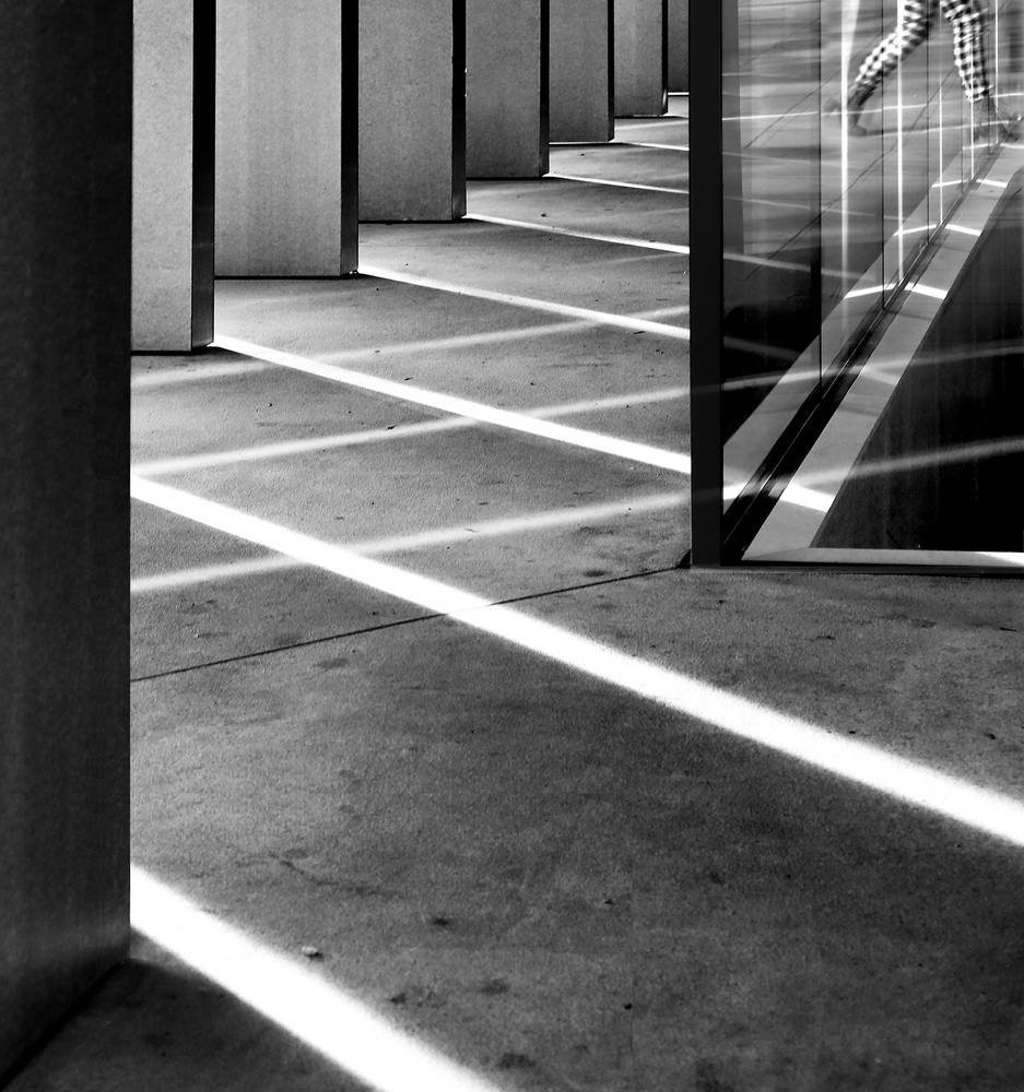 Shadow shapes seen as polygons or lines have visual weight not only because of the shape itself but because of the tone. Black as well as white shapes are heavier than grey shapes (the more neutral grey they are the less they weight); round shapes (wheels shapes for example) are more instable than polygonal shapes but less aggressive, but spheres, on the other hand, are more dynamic than those polygon shapes. Line shadows make connections with polygon shapes (real or other polygon shadows) in the frame and we may want or not want those connections in the frame. Frequently also, shadows are a subdued element of the composition, in street shooting for example the shadow of a person may have great use for a mysterious mood for leaving questions to the viewer, but the way those shadows are represented (short shadow, long shadow, diagonal, vertical or horizontal shadow) and understanding how those different shadow positions influence the mood of the picture is very important to achieve a successful image.